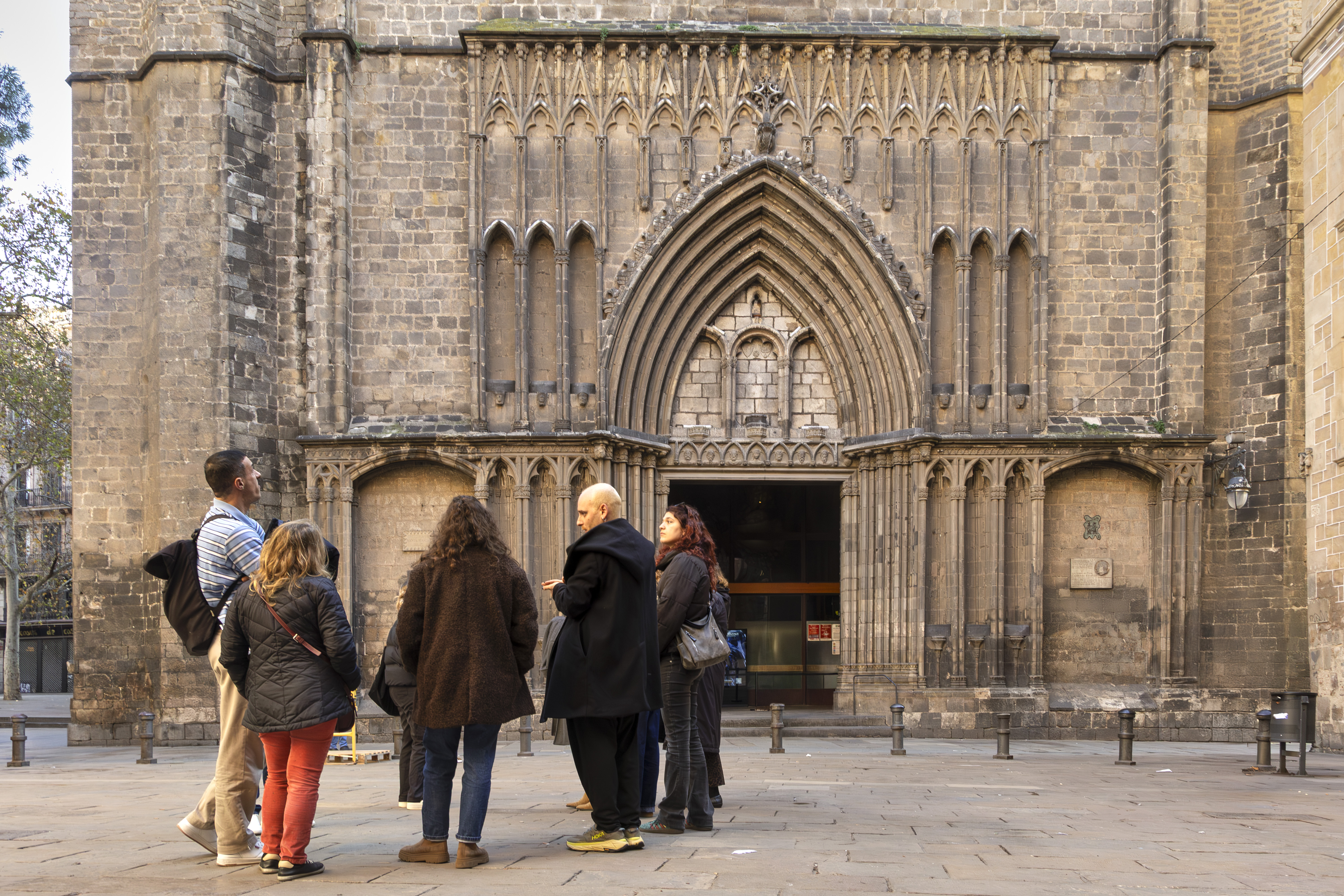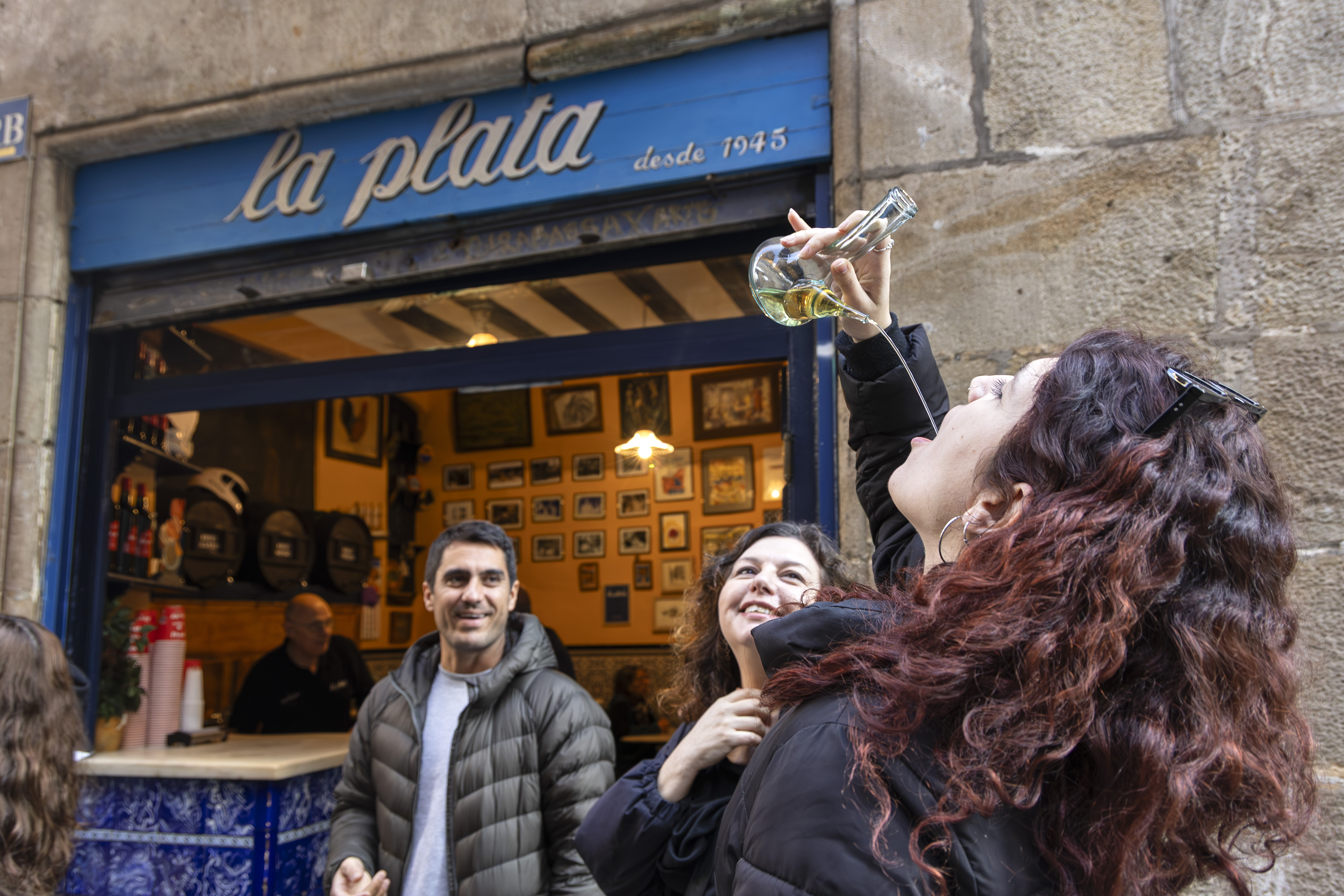 The walk continues along Carrer del Pi and Avinyó, with explanations about the evolution of the neighborhood until you reach the legendary Bar La Plata, one of the oldest bars in the Gothic Quarter. Here you will experience drinking wine from a “porrón”, paired with fried fish, their signature dish for decades.